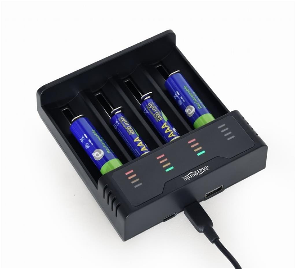 Battery CHARGER ENERGENIE, 4x AA/AAA, BLACK, TYPE-C, BC-USB-03