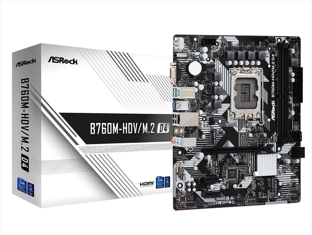 MB 1700 B760M-HDV/M.2 D4 ASROCK, 2xDDR4 5333MHz(OC), 2xM.2, HDMI, DP, VGA, PCIex 4.0 x16, 2xPCIex 3.0 x1, 4xSATAIII, USB3.2Gen1 Type-C, 90-MXBL40-A0UAYZ